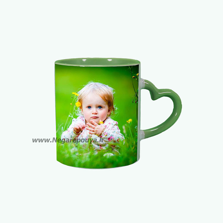 لیوان سرامیکی دسته قلب سبز سابلیمیشن در حقیقت همان لیوان سفید خام سابلیمیشن ساده می باشد که دسته آن به شکل قلب و در رنگ های مختلف و مناسب کادو های عاشقانه می باشد.